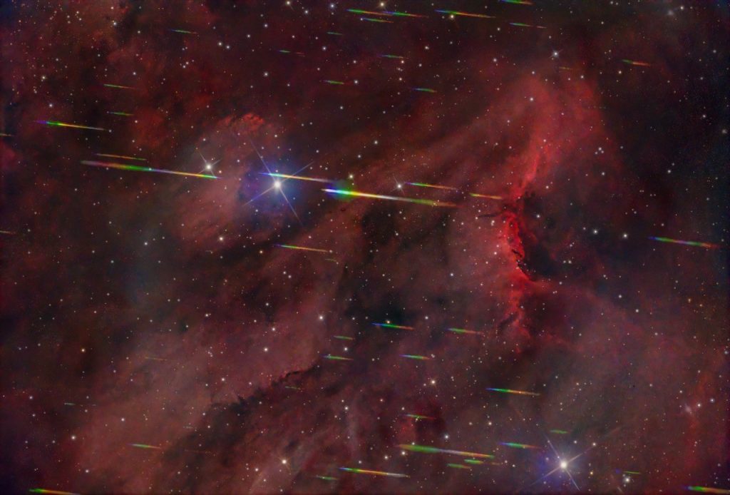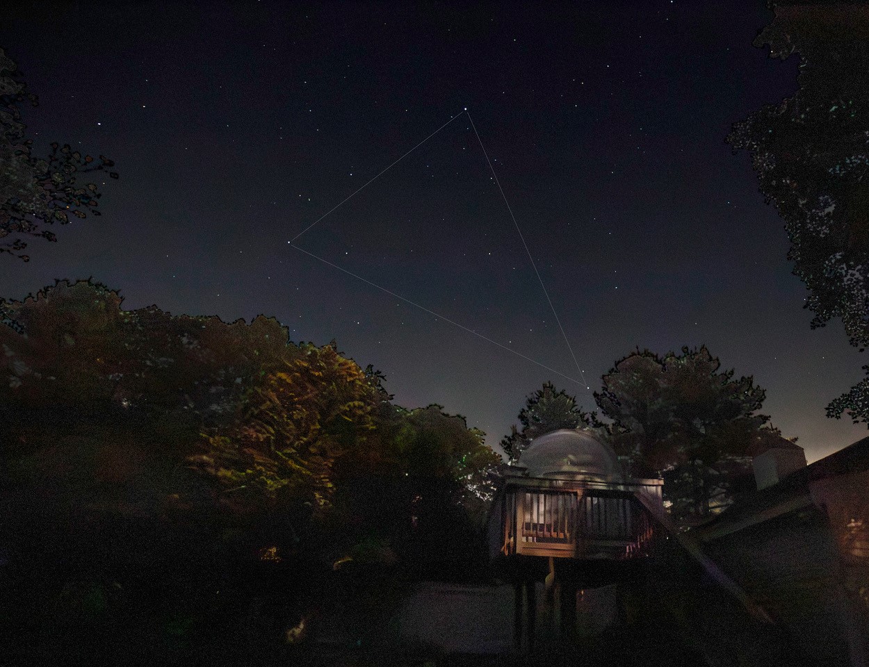 Here’s a nice image of the Summer Triangle taken from just above David Murray’s observatory! Below that is an image of the Pelican Nebula, with 57 Cygni (the brightest star in the field of view) along with star spectra extracted with his RSpec SA-200 filter from Field Tested Systems! The Pelican Nebula (also know as IC 5070) is an HII region (hence the very red color) associated with the North America Nebula in the constellation of Cygnus. 57 Cygni is a beautiful blue spectroscopic binary star, a large hot blue star putting out over 600 times the energy of our Sun!
