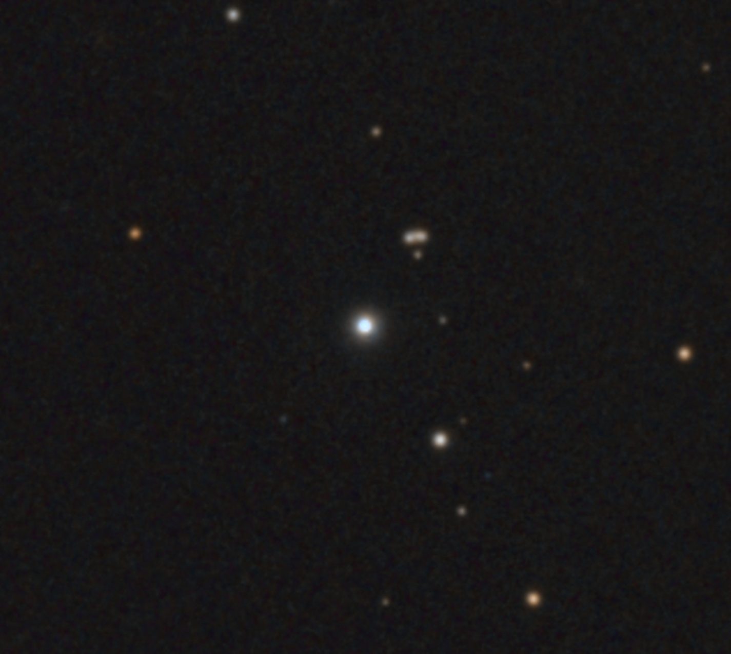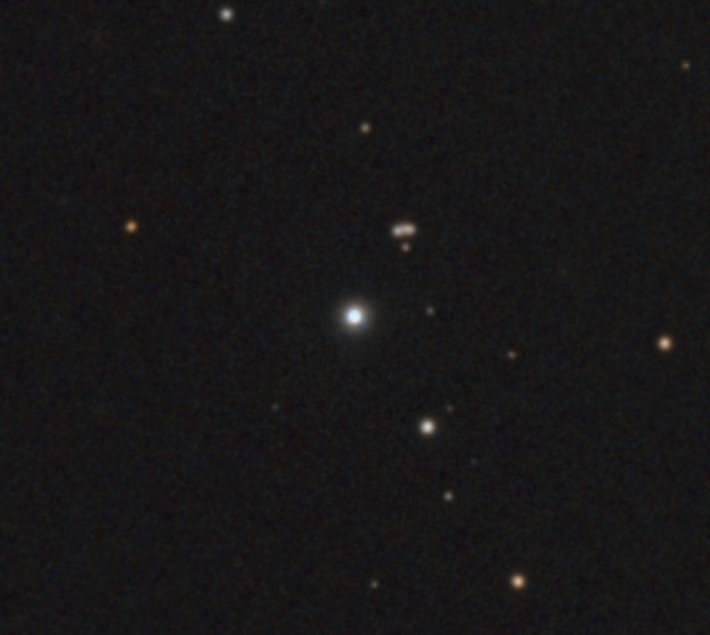 Quadruple Gravitationally Lensed Quasar (34 min exposure close up), by Terry Riopka