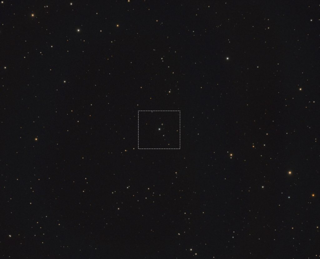 This was a 60 min exposure taken using a C6 f/10 with an ASI533 camera and an Optolong L-Pro filter – processed in PixInsight and Photoshop.
